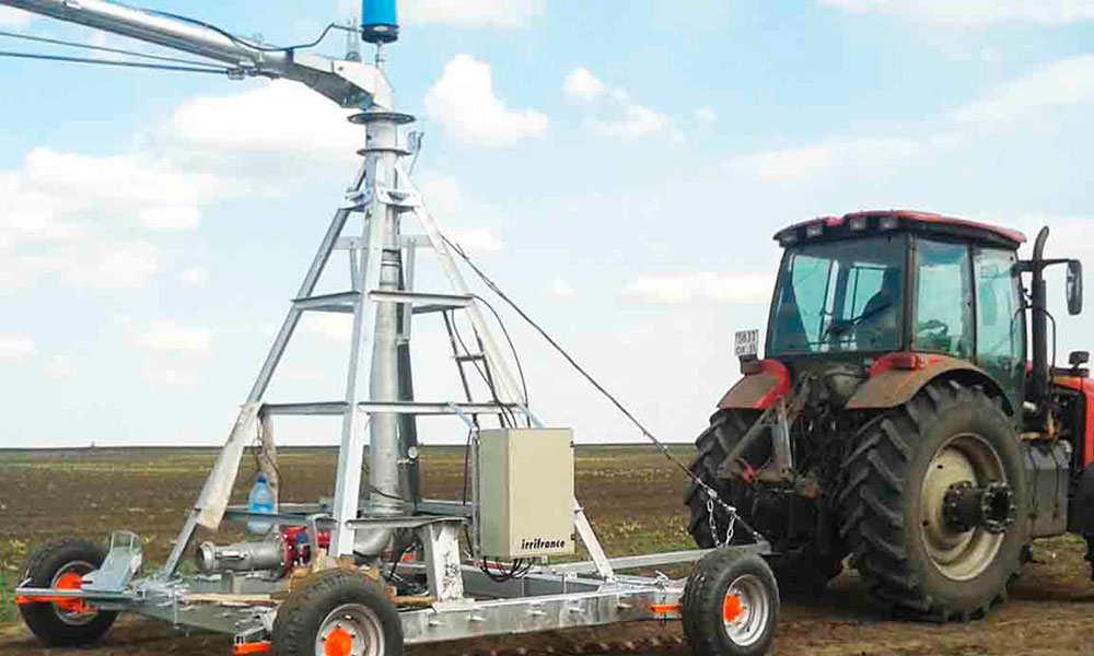 Turnul central al pivotului este prevazut cu doua roti ghidate care permit o deplasare usoara, in conditii de siguranta. Aceasta masina se adapteaza cu usurinta la diferite forme ale terenului, precum si la diferite tipuri de culturi.